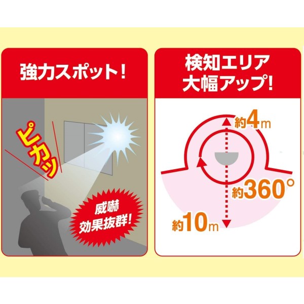 ■センサーが人や車の動きを検知して自動点灯。屋外に設置できる防水仕様(IP45、防噴流形)のLEDセンサーライトです。