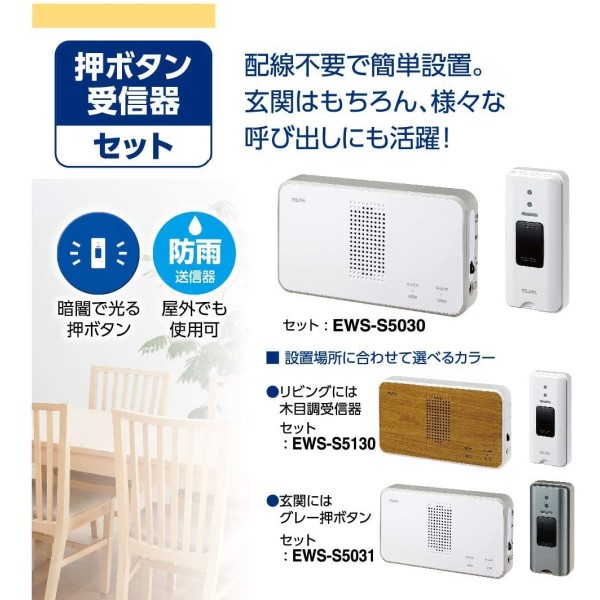 【送料無料】ELPA ワイヤレスチャイム押しボタンセット EWS-S5030 防犯 セキュリティ チャイム エルパ