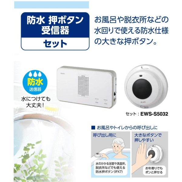 【送料無料】ELPA ワイヤレスチャイム防水押しボタンセット EWS-S5032 防犯 セキュリティ チャイム エルパ