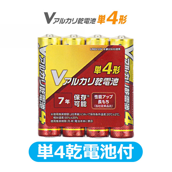 ※使用する電池は単4乾電池3本です。余った電池は湿気の少ない暗所にて保管してください。