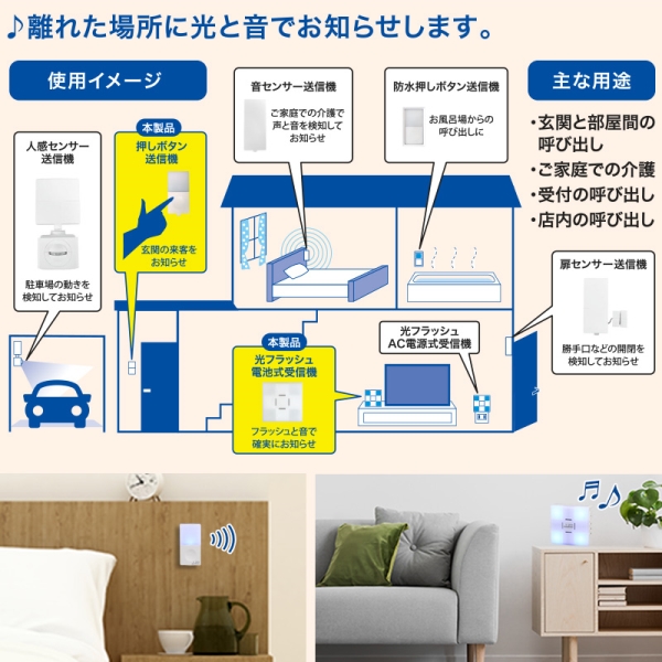 ■玄関と部屋間、受付、店内の呼び出し、ご家庭での介護に適しています。