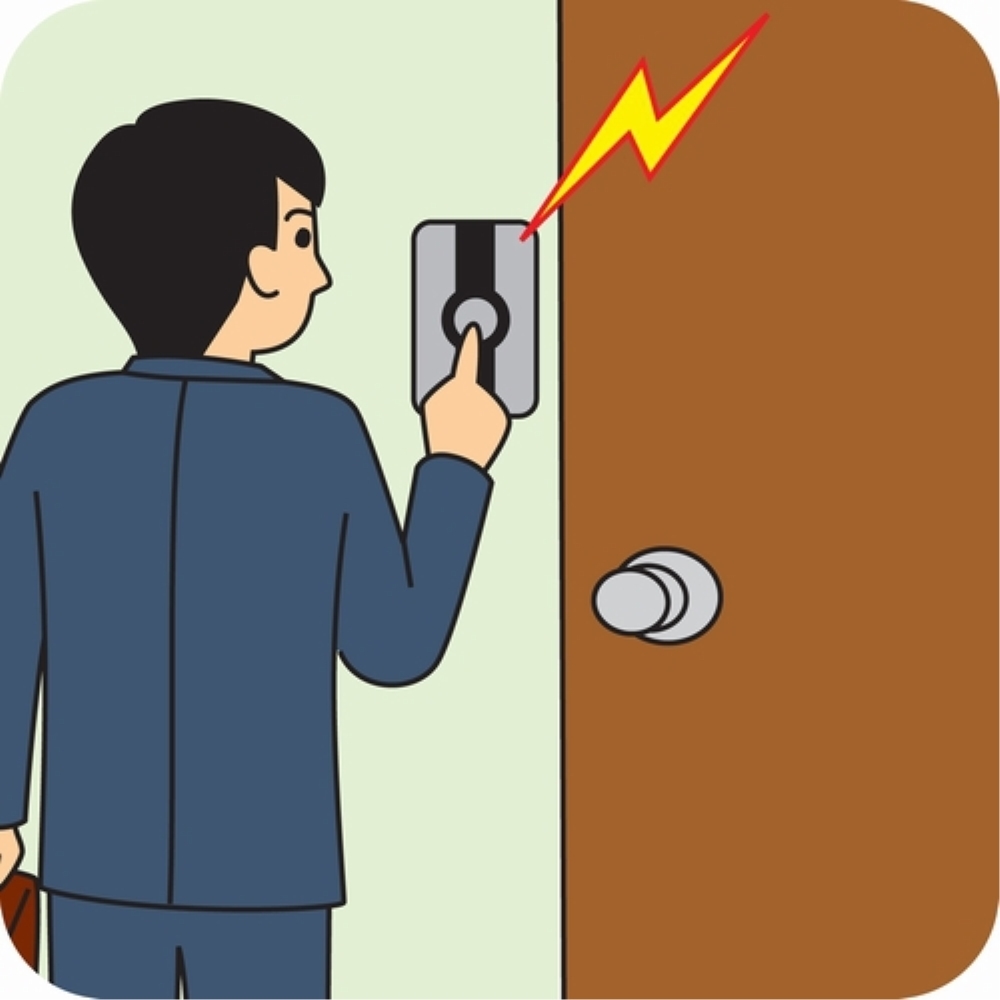 ・送信機(XP10G)は、玄関や門扉などに。夜でも分かりやすい蓄光ボタン採用です。