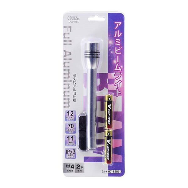 OHM LEDアルミビームライト 単4形×2本付属 LHA-01B5