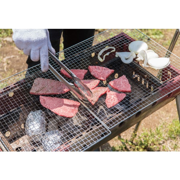 ・丈夫な厚手生地なのでBBQ等の金網も持てます。