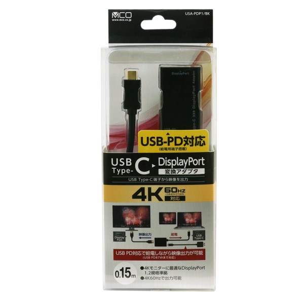 【送料無料】ミヨシ Type-C(オス)-DipsplayPort(メス)変換アダプタ USB-PD対応 USA-PDP1BK ※USB→DipsplayPort PDで給電しながら映像出力