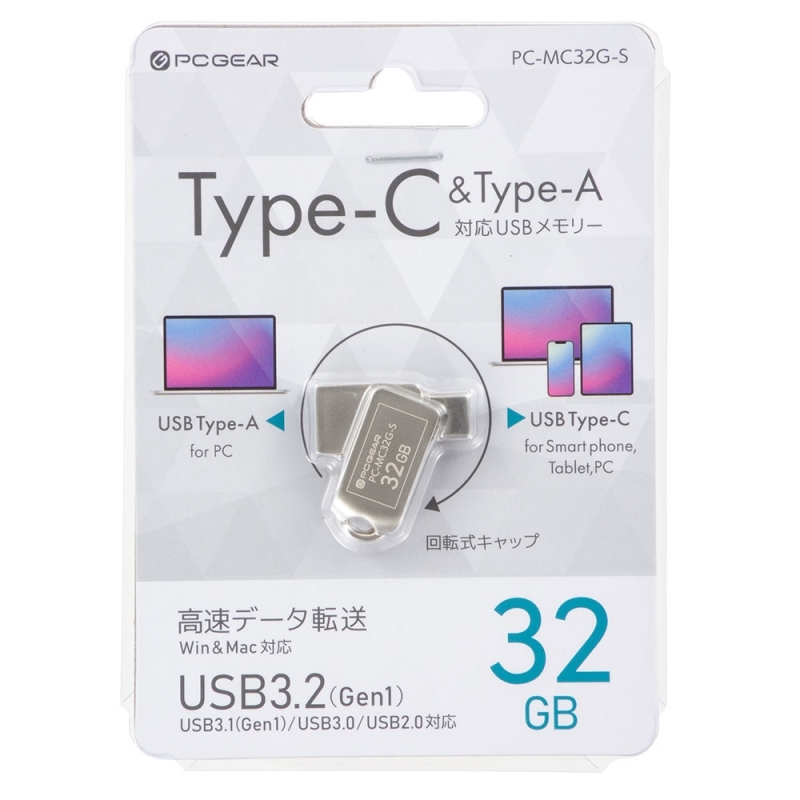 【メール便送料無料】USBメモリ 32GB Type-C+A USB3.2Gen1 回転式キャップ OHM 01-0063 PC-MC32G-S