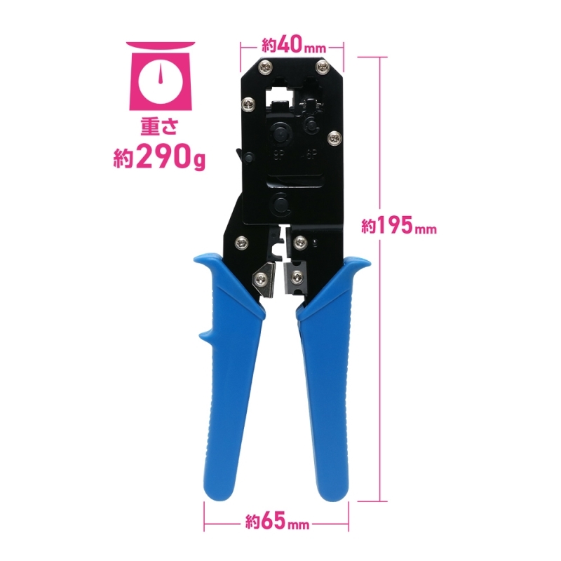 ・これ一台で8極(LANケーブル)/6極(モジュラーケーブル)のケーブルプラグの加工が可能です。