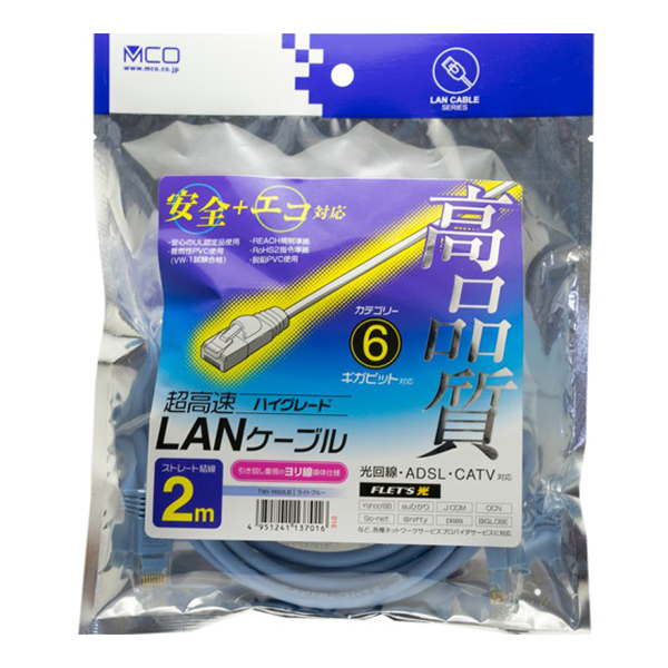 ミヨシ ハイグレードLANケーブル ヨリ線 CAT.6 2m ライトブルー TWI-Y602LB