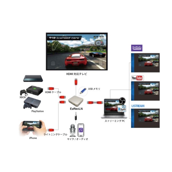 ・ライトニングケーブルだけでなくHDMI入力ポートも付いておりますので、通常のキャプチャー機としてもお使いいただけます。